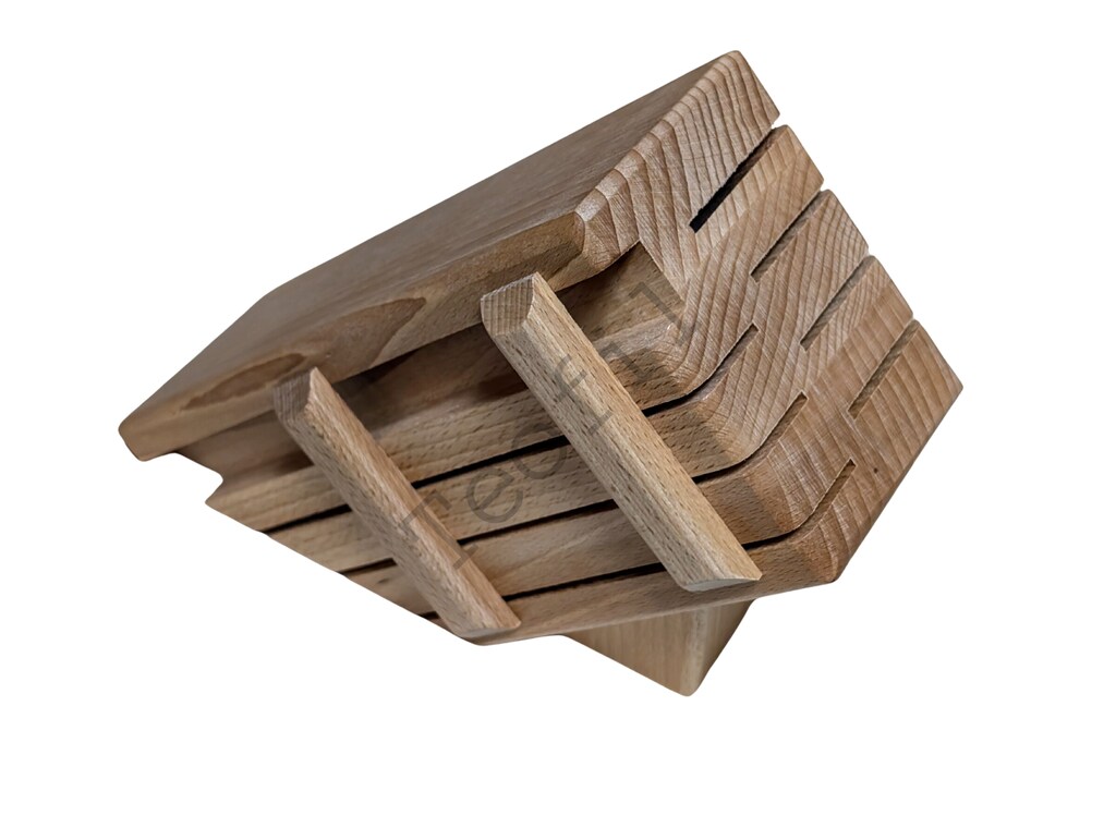 Ten praktyczny przyrząd pozwala na wygodne i bezpieczne przechowywanie noży kuchennych, zapewniając łatwy dostęp do nich podczas gotowania. Wyposażony w specjalne szczeliny, blok umożliwia stabilne i bezpieczne mocowanie ostrzy, chroniąc je przed uszkodzeniami i przedłużając ich żywotność.