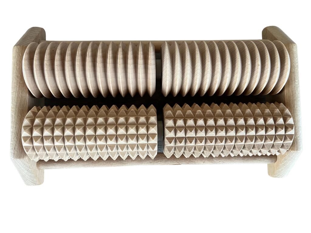 Zadbaj o swoje stopy i zrelaksuj się dzięki podwójnemu masażerowi do stóp wykonanemu z naturalnego drewna bukowego. Jego konstrukcja składa się z dwóch starannie wyprofilowanych rolek, które umożliwiają efektywny masaż poprzez toczenie stóp. Masażer o wymiarach 30×18 cm doskonale sprawdzi się zarówno w domowym zaciszu, jak i jako część codziennej rutyny relaksacyjnej.